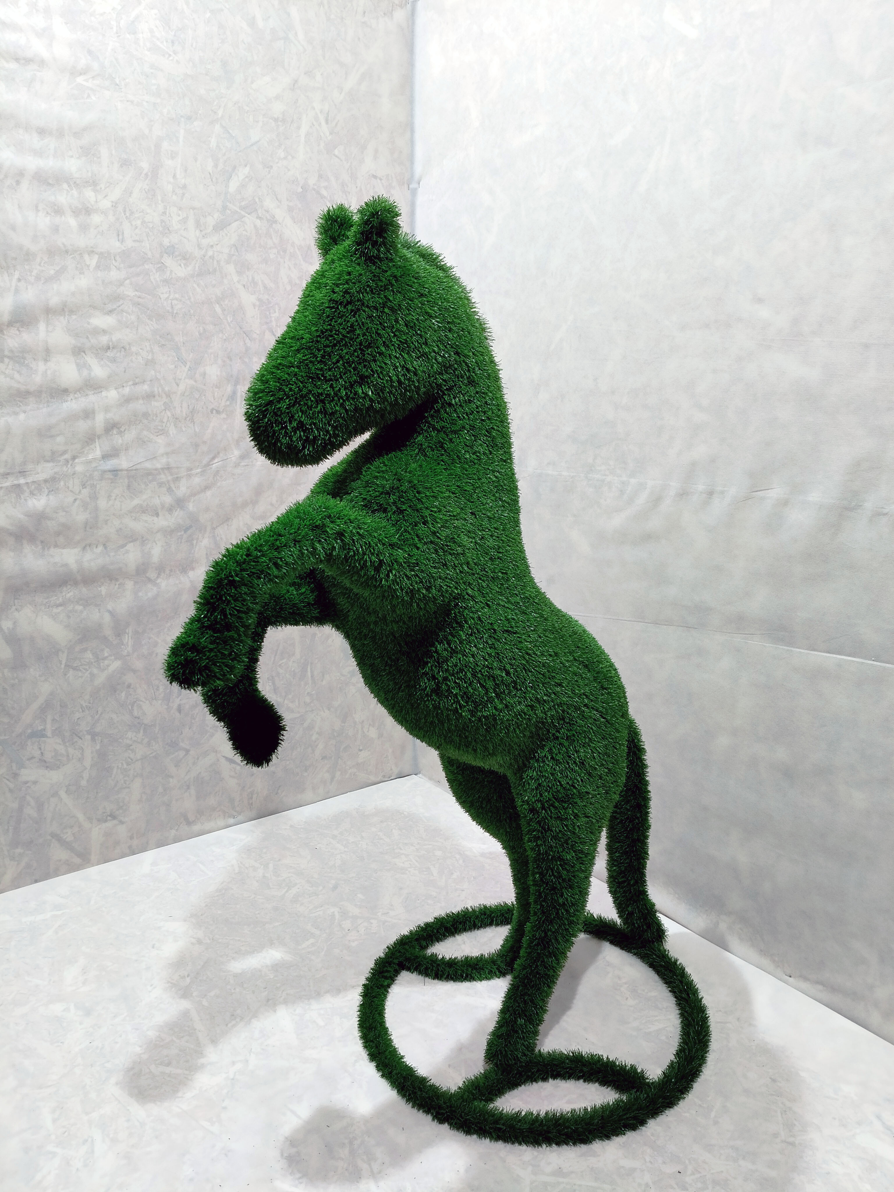 Топиарий изготовлен из высококачественного материала - искусственная трава, которая обеспечивает долгую службу и не требует особого ухода. Фигурка имеет размеры 115 см в длину, 35 см в ширину и 135 см в высоту, что делает ее идеальным дополнением для любого садового пространства.