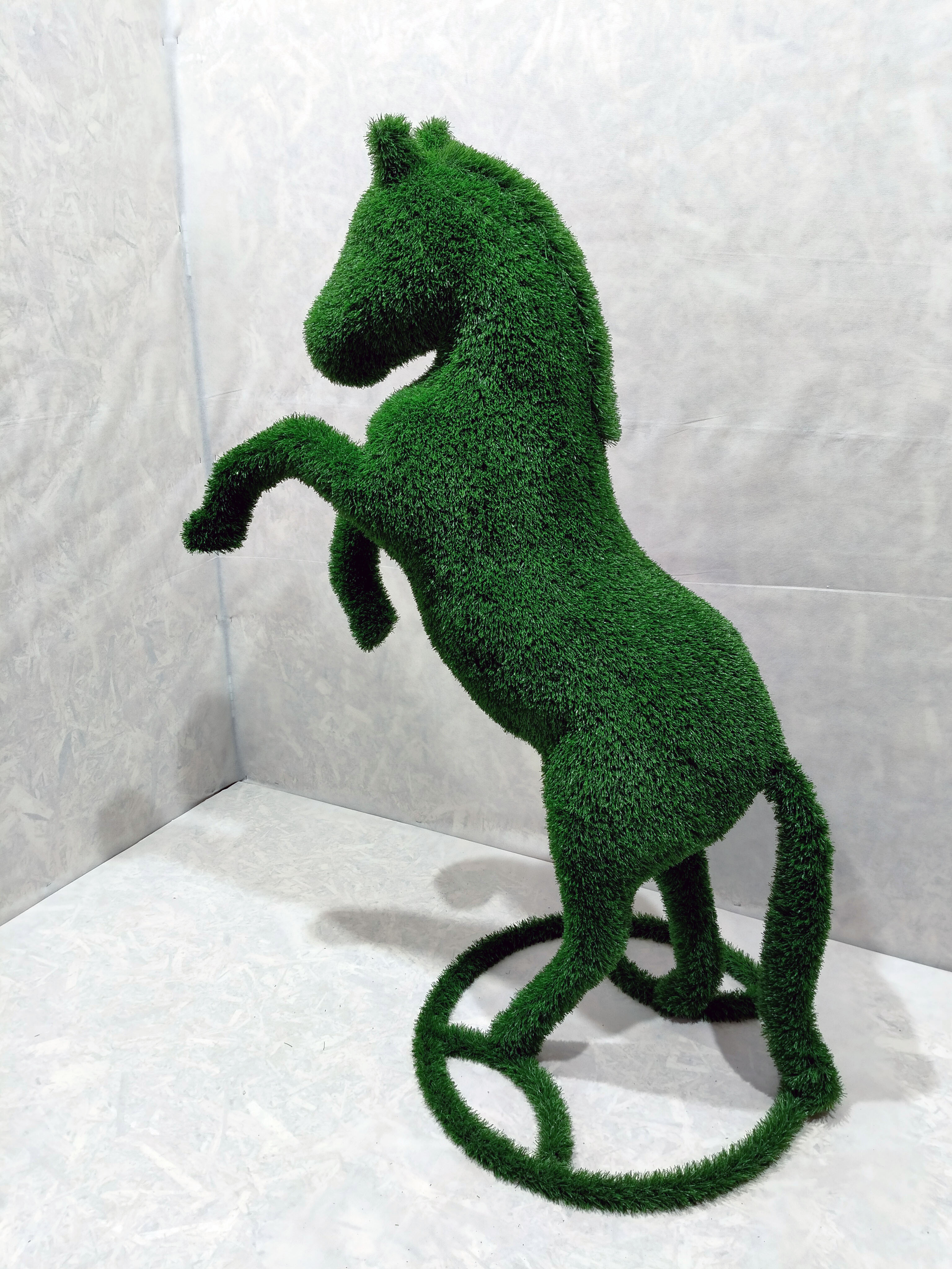 Представляем вашему вниманию уникальную топиарную фигурку - коня на дыбах! Этот красивый и оригинальный элемент декора станет настоящим украшением вашего сада или двора.
